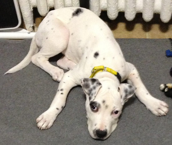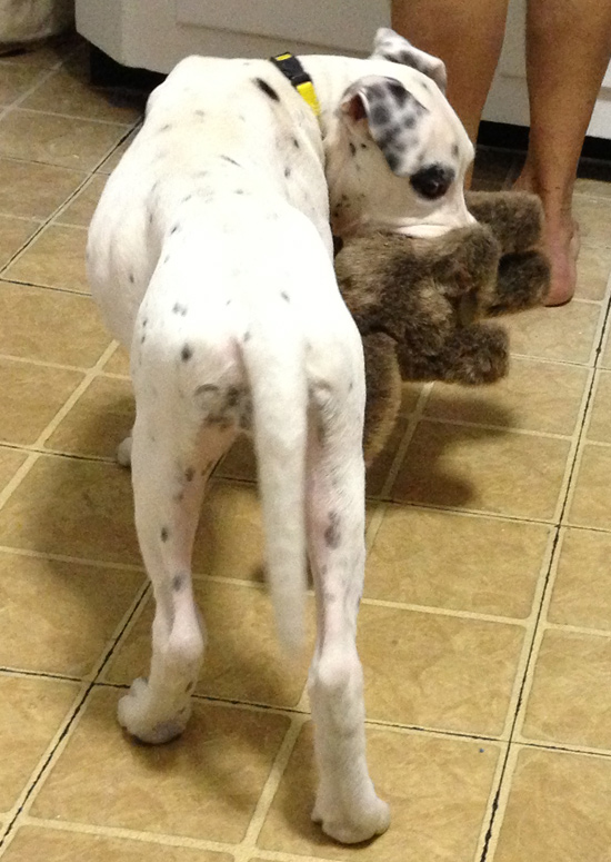 The bottom photo is from a few days ago. We figured she'd grow to about 40 lbs, but this sudden spurt is making us wonder just how big she'll get.