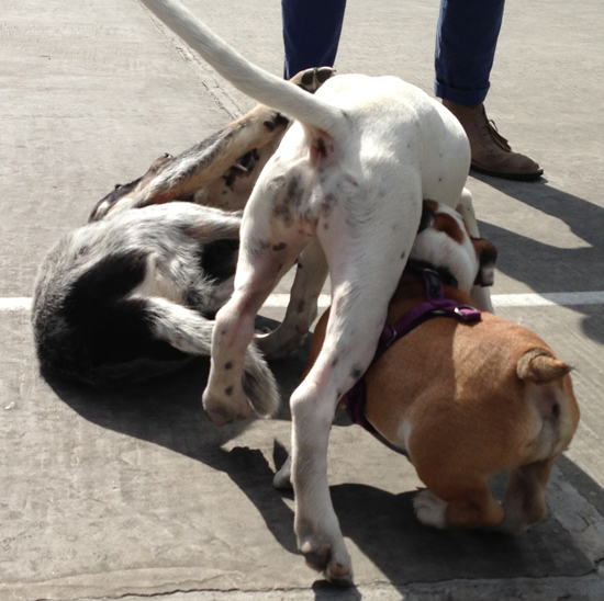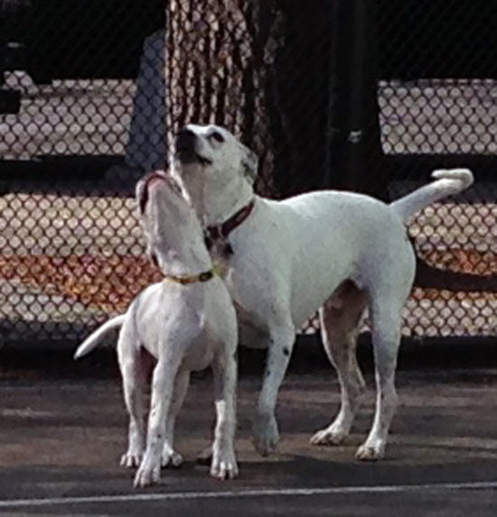 A basketball court near us doubles as a local dog run when not in use. Spanky (first photo) is a good friend's dog and could pass as Opal's older brother.
