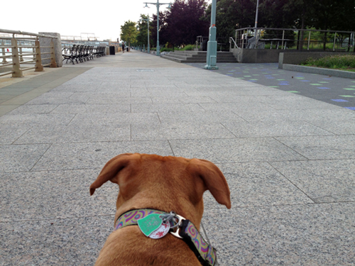 All the trucks and beeps and general cacophony of living in a construction pit has put Ginger on edge. She only wants to go out at three in the morning and that's when Joe takes her to the dog run. I take her to the river or for a long walk at six a.m., and once the sun is fully up and construction has kicked in she won't leave our patch of sidewalk. We're barely sleeping, but we're hoping things start to change once all the demolishing is finished. It's wishful thinking, but it's what I'm telling myself right now. The construction guys and occasional construction gal love her, so she's happy as can be.