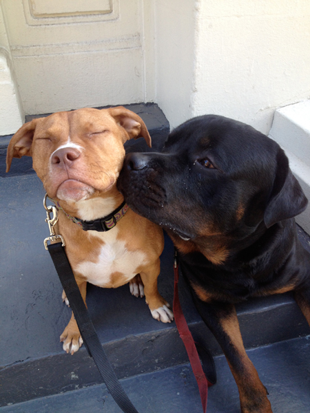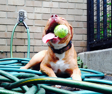At this point it's nearing 8:00 and we head home. She walks with the ball in her mouth and everyone wants to pet her, take her picture, coo over her. A guy who works in a parking garage once gave her a ball and now she peeks her head in every time we pass to see if he's around. He's as eager to see her and often comes out and pets her. He's part of her street crew now. To this dog, her crew matters.