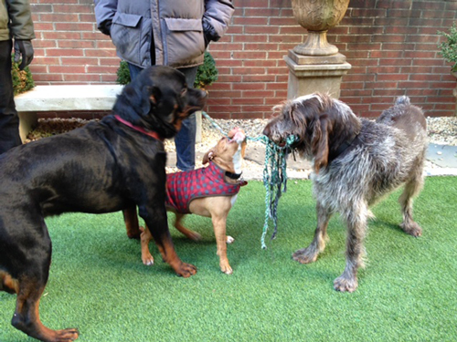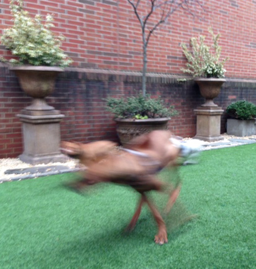 The Soho Grand has a private dog run for guests and has given us and other neighbors a key to it. Almost every morning the same crew shows up: Ginger, Relic, Tufo and Pico. If we try to take Ginger to a different dog run in the morning she lays flat on the sidewalk and digs in. This dog loves her routine, and since I do, too, I'm good not having to think about where to take her as the sun is coming up.